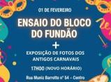 Prepare o seu brilho e a sua alegria! No dia 01 de fevereiro, nossa cidade se enche de ritmo com o ensaio oficial do Bloco do Fundão. É hora de aquecer os tambores e celebrar a nossa cultura!